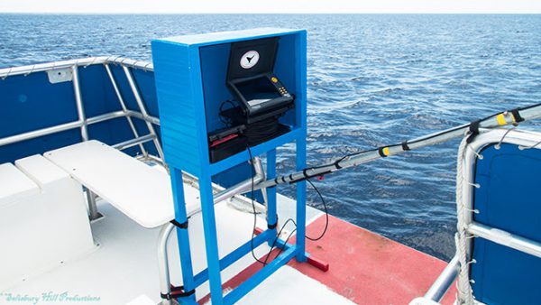 Rendell’s search lead him to underwater camera innovator Aqua-Vu, and eventual purchase of an Aqua-Vu HD10i Pro underwater viewing system. Mounted to a steel pole deployed off the bow of the whale-watching boat, the high-definition underwater viewer plays live sub-sea footage on a 10-inch Aqua-Vu LCD. The camera has become an attraction in itself, compelling tourists to huddle around the view-screen for a whale and dolphin play-by-play.