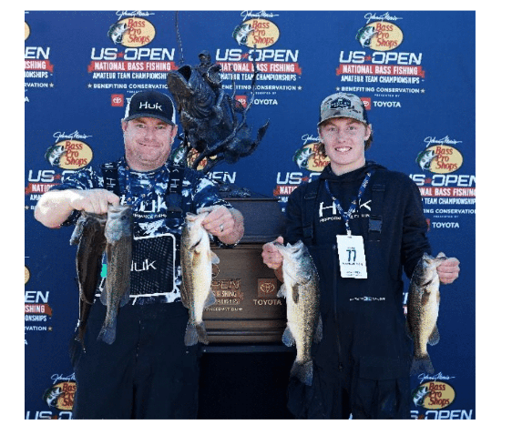 GROVE, Okla.–Amateur fishing buddies James Wayne and Creston Harrelclaimed first placeat the regional qualifying event for the Bass Pro Shops US Open National Bass Fishing Amateur Team Championships–a first-of-its-kind amateur fishing tournament offering the biggest payout in freshwater fishing history –on Saturday, October 16, on Grand Lake.Wayne from Vinita, Okla.,and Harrel from Claremore, Okla.,fished from a Rangerboat and hauled in a five-fish catch weighing in at 17.06poundsto top the 250-team field. They collect a first-place prize of $50,000 and are one of 40 teams to qualify for the National Championship on Nov. 19-21 at Big Cedar Lodge on Missouri’s famed Table Rock Lake. The National Championship will be broadcast internationally on NBC and carries a $1 million cash prize to the winning team.