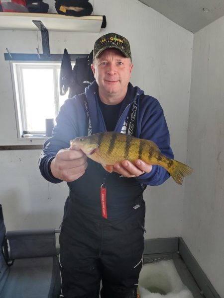 On the Rainy River… As most fish the lake this time of year, there are some walleyes being caught on the river primarily in the mornings and evenings. As there is current, you need to know where ice is good, etc. Gold, glow colors and orange work well. A jig and minnow close to the bottom has been effective.
