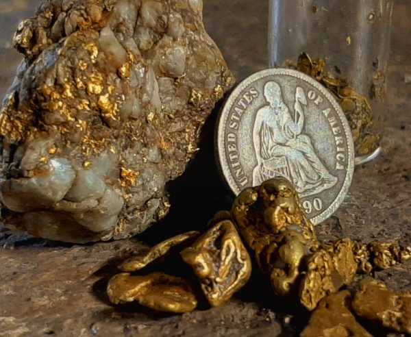 “I found a good ground source in northern California that first year and proceeded to recover many grams of gold there,” says Samarco, who does his gold detecting with Minelab Gold Monster 1000 and GPX 5000 all-gold detectors. “I’ve found a lot of additional areas since that time, including the hilltops of an ancient riverbed, where I found a two-gram crystalline nugget in the first 30 minutes searching. I also found an 1890’s seated liberty dime next to a nearby 1800’s claim post.”