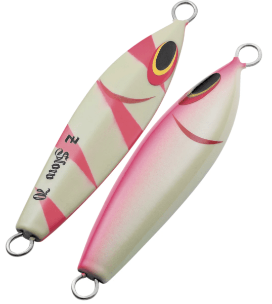 Z-Slow jigs are available in a wide variety of enticing colors and are also enhanced with aluminum or holographic applications. Hook eyes are all part of the same one-piece wireframe to ensure superior strength and lure integrity. The rugged hand-painted finish will stand up to repeated attacks from the toothiest predators. Z-Slow jigs are also available in a wide range of sizes from 45 – 400 grams.