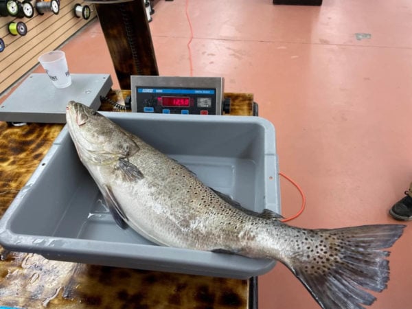 They decided to quickly load the boat and drive to Neuse River Bait & Tackle in nearby Grantsboro. “We weighed the fish on a certified scale there, which also read exactly 12.52 pounds. Then, we had to wait almost three hours for a state biologist to arrive and certify its official size (12.50 pounds.) We had every intention of releasing the fish and did everything we could to keep it alive in aerated, saltwater bait tanks, but unfortunately, it just didn’t survive.”
