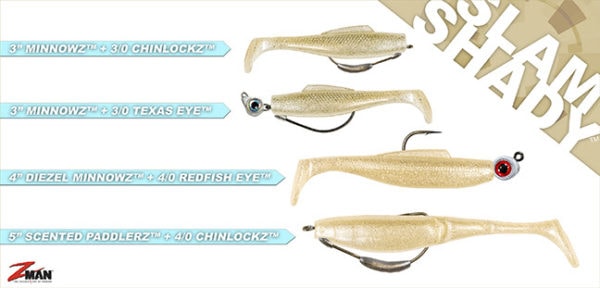 Immediate demand for the champion color prompted Z-Man to make Slam Shady available in other elite inshore baits: 4-inch DieZel MinnowZ™, 4- and 5-inch Scented Jerk ShadZ™ and 4- and 5-inch Scented PaddlerZ™, in addition to the 3-inch MinnowZ. For the first time, anglers everywhere can now find the phenomenal fish-catching color at their favorite fishing shops, including online outlets and at zmanfishing.com.