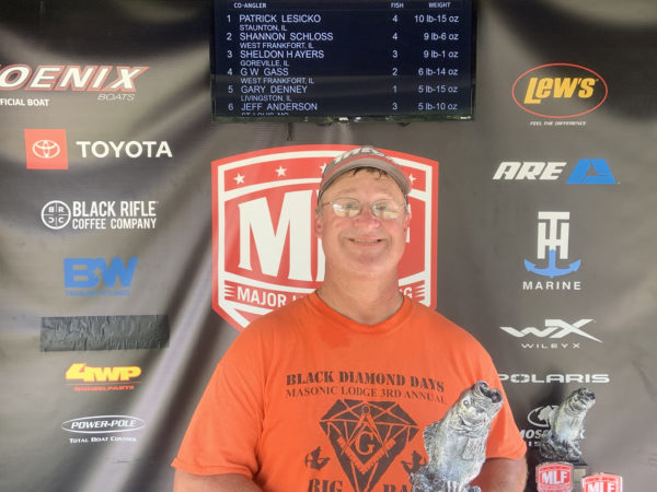 Patrick Lesicko of Staunton, Illinois, won the Strike King Co-angler Division and $2,122 Saturday after catching four bass weighing 10 pounds, 15 ounces.