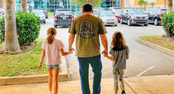 Ryan & daughters leaving the hospital