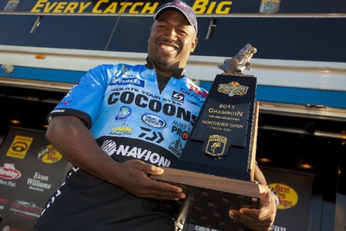SYRACUSE, N.Y. – Ish Monroe had a ball on Oneida Lake for the third straight day as he went wire-to-wire for the win of the final 2011 Bass Pro Shops Bassmaster Northern Open. He rode a hot frog bite all three days and backed it up with a prototype flipping bait to sack 51-2, more than 2 pounds ahead of runner-up Michael Simonton.