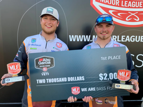 LEESBURG, Fla. (Jan. 10, 2022) – The Emmanuel College duo of Seth Jenkins of Townville, South Carolina, and T.J. McKenzie of Andrews, South Carolina, won the MLF Abu Garcia College Fishing Presented by YETI event on the Harris Chain of Lakes Friday with a five-bass limit weighing 25 pounds, 14 ounces. The victory earned the Lion’s bass club $2,000 and a slot in the 2023 MLF College Fishing National Championship.
