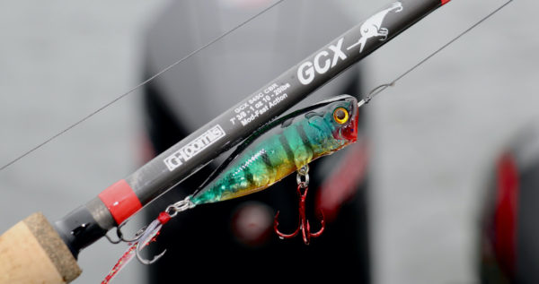 I present poppers using a 7-foot, medium-heavy power, moderate-fast action G. Loomis GCX crankbait rod. Unlike many of the fiberglass crankin’ sticks available today, this G. Loomis GCX rod is fashioned entirely from graphite, taking advantage of over 40 years of rod design and engineering experience to slow the blank’s action. The result is a slender, lightweight rod that delivers laser-precise casts and is a joy to fish. I pair this rod with a 7.1:1 gear ratio Shimano Metanium reel, spooled with 40 pound-test PowerPro braided line in the stealthy Moss Green color. Throw Mad Max with this combo, and you may find yourself fishing that dynamic new popper all day long – with a smile!