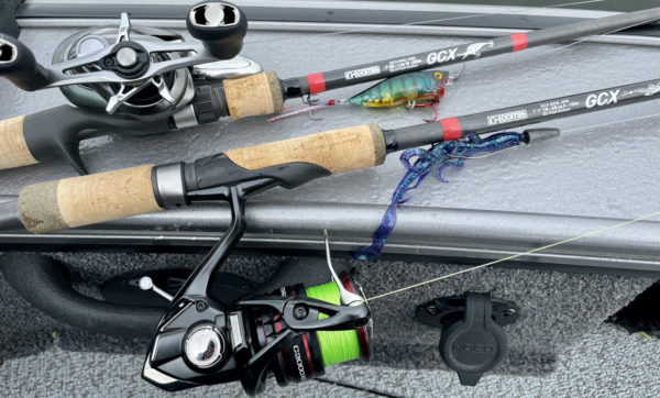 I’m a big fan of Texas rigging using spinning gear. A 7’1” G. Loomis GCX JWR – short for “Jig-Worm Rod” – with medium power and extra-fast action is a great choice, especially when paired with a C3000 series Shimano Vanford. This is a power-packed, sensitive, and exceptionally well-balanced combo that allows the angler to feel every weed leaf and stem, detect subtle bottom composition changes, and of course, easily detect bites from resident bass.