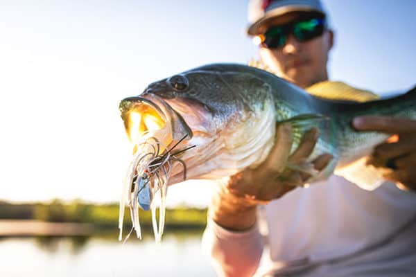 Adding a secondary layer of sound, Walker prescribed a wider jighead—and totally original sculpt— that frequently collides with the blade as it oscillates back and forth. “The direct blade-to-jighead connection gives the blade so much freedom of movement. When you pull the bait fast with your rodtip, you can hear that knocking sound as the blade cracks the jighead—it’s another auditory cue that really makes bass eat the bait.”