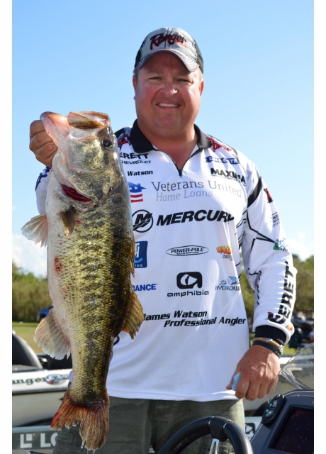 Mercury pro James Watson with the biggest fish of his life: 8 pounds, 5 ounces. (Joel Shangle)