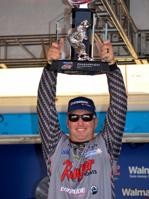 Brett Hite hoists the trophy after four days of dominance on Lake Okeechobee. (Joel Shangle)