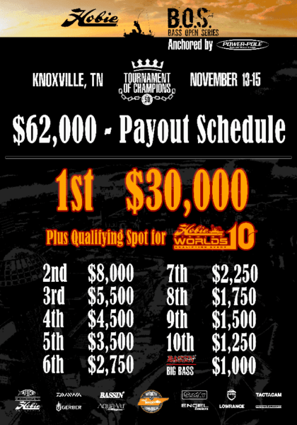 HOBIE B.O.S. ANCHORED BY POWER-POLE ANGLER OF THE YEAR (A.O.Y.) CHAMPIONSHIP UP FOR GRABS AT HOBIE T.O.C. EVENT
