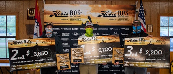 When all was said and done, Nick Chabarria, 29, of St. Louis, Missouri, claimed his first Hobie B.O.S Anchored by Power- Pole® victory with a two-day limit of 175.25 inches of largemouth bass, a quarter-inch more than runner-up Bryan Howell, 28, of Rowlett, Texas. For his efforts, Chabarria came away with a $6,700 first-place check, while Howell cashed out with $3,650. Third-place finisher, Kevin Workman of Freemont, Nebraska, took home $2,200 as the event paid out $24,580 in total.