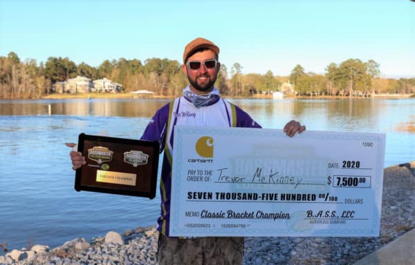 COLUMBIANA, Ala. — Thanks to a morning flurry, McKendree University senior Trevor McKinney caught 11 pounds, 11 ounces to win the Carhartt Bassmaster College Classic Bracket presented by Bass Pro Shops at Lay Lake, defeating McKendree teammate Blake Jackson by just over a pound.