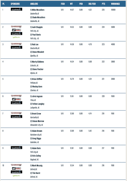 The Top 10 places are below for a complete list of standings visit: https://www.alabamabasstrail.org/lake-martin/results/