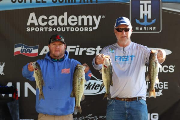 Rob Lee and Steve Winslett finish third with 14.36 and continue to be one of the most consistent teams in the ABT. In practice they located some sight fish, but the weather change on Friday affected their plan. They only caught one off bed. “We knew the fish were still in the area, so we had to blind cast to them. The wind coming out of the west made sight fishing difficult, but we stayed in the areas we saw them on bed on Wednesday and Thursday. After a front like this and blue bird skies it makes it tough to find bedding fish because they typically pull off the bed and move out a little. The fish we found were in 3-feet or less of water and the water temp was 58°-64°. When we finally found them and started catching them, we stayed in the area the rest of the day. Fish were caught on a Big Bites green pumpkin tube and stick bait. “We really want AOY, but it takes a lot of work. We have two really good second place finishes at the Alabama River, which is a very unpredictable lake and changes so much. We need to put our work in to prepare for Eufaula to close out the season.” They took home 3rd place and $4,000.