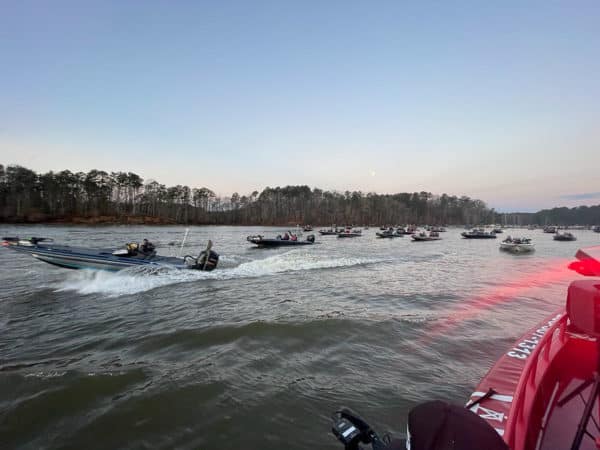 Mother Nature finally cooperated on tournament day. The ABT seems to be known for having difficult conditions on tournament day. The last few events were no different with the weather changing drastically on tournament day including frozen conditions. However, this event had beautiful Chamber of Commerce weather. Saturday was full of sunny skies and temperatures in the 60s. Friday’s final day of practice brought major thunderstorms through the area affecting the fishing for some teams causing their patterns to change and sending them searching for new waters to catch fish.