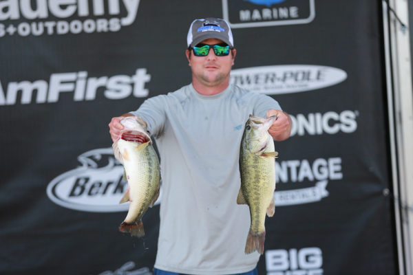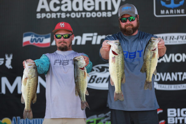 The second-place team of Zachary Taylor and Josh Austin caught 19.29 pounds. They have fished the ABT for the last five years and cashed 3 checks in four events here at Weiss Lake. “Practice for us on this lake has always been horrible, but we had a top ten finish last year. We woke up this morning knowing we were going to catch five; it was just a question of what fish were going to show up. They showed up for us today. We spent practice finding grass and watercolor we wanted to fish on tournament day probably marking 25 different areas. The first spot we pulled into today had 8 boats sitting on it. We got our confidence back when we moved to our second spot and quickly caught our largest fish of the day at 4.61 pounds. We spent the rest of the day with our heads down focusing on watercolor grass and presentation and it worked out.” The grass they were looking for “was the typical Coosa Riverbank Grass, but the grass was not right on the bank. It needed to be 15-20 yards off the bank with some type of hard structure mixed in, either a wooden lay down or a dock. We didn’t really catch any fish on the bank; it was more in the scattered grass off the bank. The water depth we targeted these fish in was six inches to three feet.” They gathered their solid limit fishing shallow and moved out later in the day to focus on humps. “We really aren’t shallow water fishermen, and we prefer to be offshore. We located the fish in practice shallow, so we decided to run that pattern. Later in the day we shifted to our offshore pattern of fishing shallow humps with a Shaky Head.” Their payday for this event was $,5750 including the bonus from Garmin and ABT Gear.