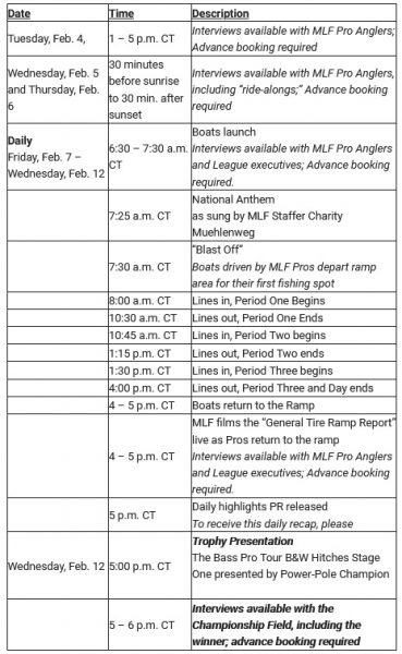Fans and media can watch nine hours of action every day of competition on MLFNOW! livestream on MajorLeagueFishing.com or download the MLF App for your Apple or GooglePlay device or on MyOutdoorTV (MOTV).