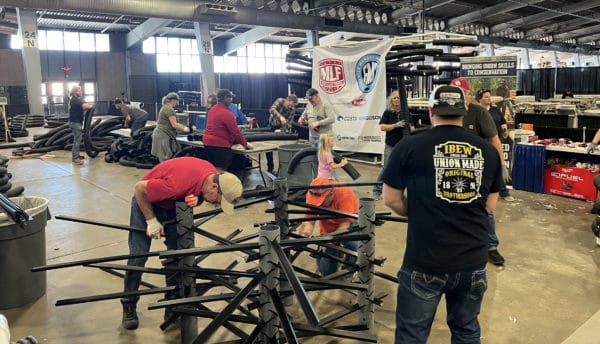 Outside of the press event, the FMD used the REDCREST expo to provide the Oklahoma Department of Wildlife Conservation (ODWC) with more than 150 artificial structures. Incorporating a habitat build directly into the Expo was a first for the industry. At the Ferguson Habitat Build booth, volunteers from the Union Sportsmen’s Alliance used PVC materials donated by Ferguson to construct 100 4x4x4-foot Georgia Cubes, as well as assemble a MossBack Fish Habitat. The Mossback structures were donated by MossBack, the Kevin VanDam Foundation and via fan donations at the expo.