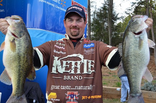 ANDERSON, S.C. (March 8, 2012) – Variety was the name of the game as the world’s best bass-fishing pros opened the Walmart FLW Tour Major on Lake Hartwell presented by Folgers. Anglers threw a number of different baits and different presentations were plentiful as the full field of pros from all across the United States, Canada, Spain and Japan began their four-day battle for a top cash award of up to $125,000.
