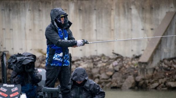 Omori had to fight off Palaniuk and Montgomery a few times throughout the day, but a burst of scorable fish in Period 3 secured the day for Tak. Working a 1.5 squarebill crankbait on 16-pound fluorocarbon, Omori hugged a steep bluff wall. Casting his crankbait parallel to the wall, Omori pulled out six bass for 11-9 over the final hour of competition to separate from Montgomery and Palaniuk.