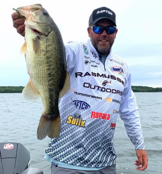 A few weeks earlier and a hundred-fifty miles to the south, touring pro and fishing guide Adam Rasmussen had just subjected himself to an extreme case of bass thumb, boating an astonishing number of fish—and crushing the field at a Classic Bass Champions Tour contest by 142-pounds of bass. In a single 8-hour day of fishing, Rasmussen lipped and logged 98 bass for 247-pounds total—every one of which engulfed a Z-Man bait.
