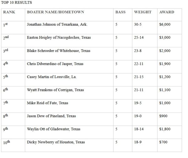 Texarkana’s Johnson Wins Phoenix Bass Fishing League on Sam Rayburn Reservoir presented by Berkley