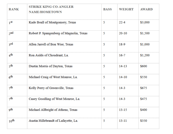 Montgomery’s Beall Wins Strike King Co-Angler Division
