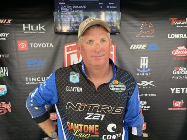 Boater Clayton Boulware of Zavalla, Texas and Strike-King co-angler Lane Anderson of Kountze, Texas.