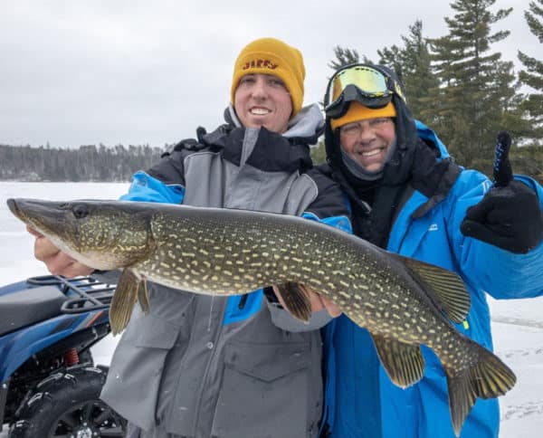 “Early ice is probably the most important time to practice safety,” asserts Peterson. “Obviously, those first couple of weeks of ice are a time when the snow machines stay in the garage and all travel is on foot. I use a spud bar to check ice thickness as I carefully walk onto the ice, because early season ice cover can be incredibly variable – from a perfectly fishable five or six inches in one area, to absolutely unsafe inch-thick ice just a few steps away. I spud my path all the way out to my spots, and am sure to travel only along those routes with safe ice cover. Even with all of that prep, accidents can still happen; I never hit the ice without wearing a float suit, with a set of picks around my neck, to help pull me out of the water if I were to fall in.”