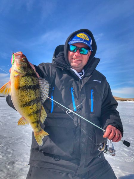 Ice anglers have long been infatuated with big jumbo perch and late ice is a prime window for targeting perch on a lot of different fisheries. In some states, game fish seasons close prior to the late ice period where as perch and other pan fish seasons remain open year-round. Part of the allure for ice anglers targeting perch can be the highs and lows of perch fishing in that we often need to move and drill holes to find fish. A frustrating day can change in a matter of minutes with one hole… one school of fish. You can go from a zero to a hero quickly when fishing for perch.