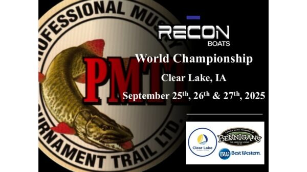 Clear Lake Iowa, home to the 2025 PMTT Recon Boats World Championship did not disappoint the top 50 PMTT anglers in the country. Setting not only a Championship record, but also an All-Time Event Record with 126 muskies caught and released over the 3 days. The 1st Place Prize Package with a Brand-New Recon 2085T powered by a Mercury motor valued at $60,000 went to the team of Ty Sennet and Ethan Smith with 9 muskies a 39.5, 39.5, 38.5, 37, 36.75, 36.75, 34.75, 33.75 & 31. The most prestigious award in muskie fishing, the 2025 PMTT Top Gun Team of the Year honors went to the team of Gregg Thomas & Rick Hoover.