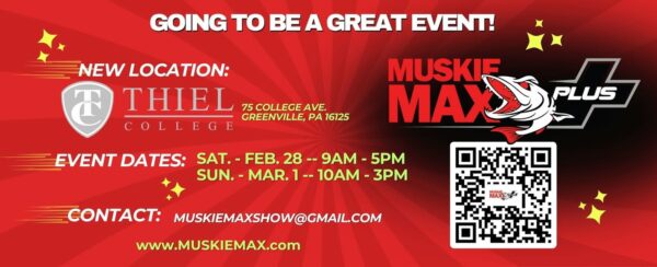 Todd Leopardi [Owner of Leo Lures] is taking over this spectacular fishing expo. He’s secured a new venue through Thiel College in Greenville, PA, and is ready to welcome Exhibitors and our MUSKIE MAX Guests to check it out. Easy access from Pittsburgh, Cleveland, and Buffalo. Lots of good things are coming your way.