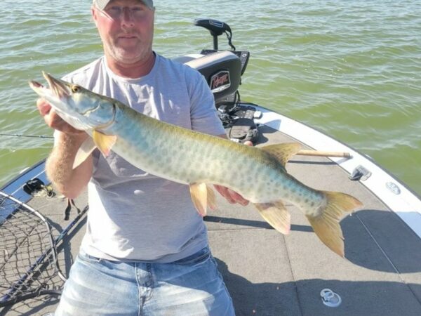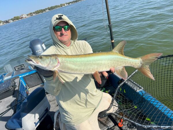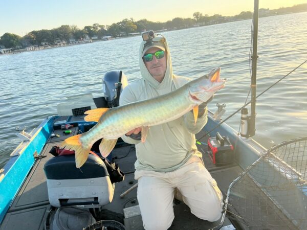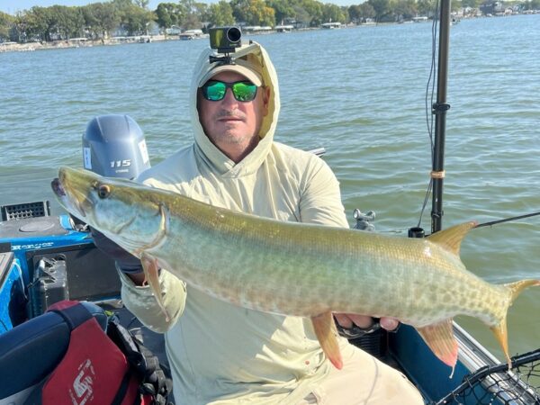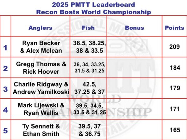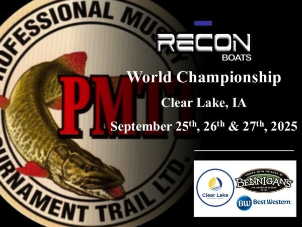 The bite was truly insane for Day 1 of the Recon Boats World Championship on beautiful Clear Lake in Iowa. The town along with the muskies, welcomed us with open arms. Clear Lake is known for its Small-Town Lake Life appeal and it didn’t let the anglers down, with triples, quads and even a quintuple rounding out the top 5. The field caught and released 52 muskies, which is over 100% of the field, a first for a Day 1 PMTT Event, with 27 teams, over half the field, already qualifying for the final day of fishing on Sunday. The fish were caught all over the lake and throughout the entire day, with no set windows or spots. In fact, most anglers agreed that entire lake was the spot. Our current leaders are the Team of Ryan Becker & Alex Mclean with four fish a 38.5”, 38.25”, 38” & 33.5”, Big fish of the day was a 44” caught by the team of Scott Popowski & Chris Reibe. The anglers are looking forward to Day 2 tomorrow with many believing the bite will continue through the final elimination day tomorrow. Stay tune for more updates tomorrow and be sure to follow us on Facebook for real-time updates throughout the day.