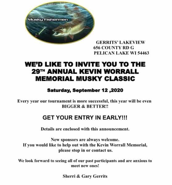 |  Kevin Worrall Memorial Muskie Classic Set For September 12th Category: Tournament Jun 11th, 2020 by Keith Worrall Modified Jun 11th, 2020 at 7:50 PM Entry form