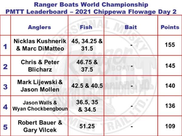 Day 2 Results – 15 Muskies registered