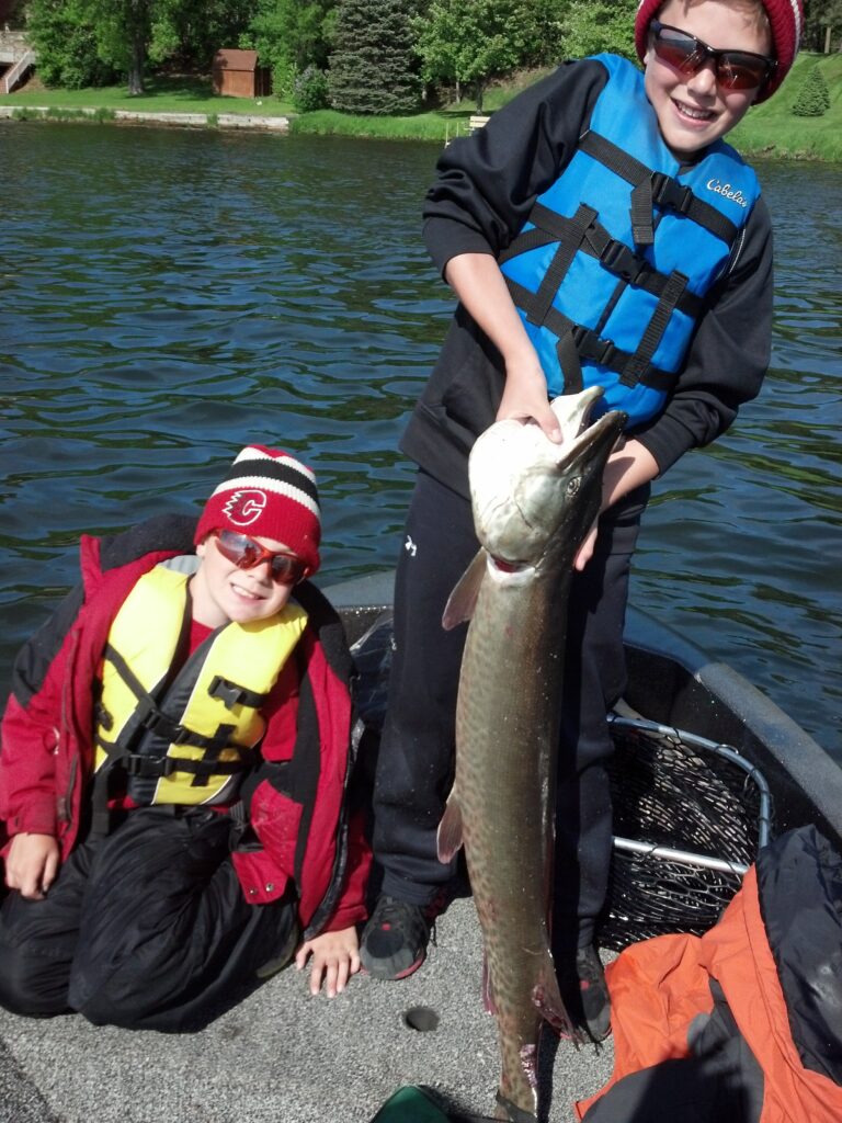 I share this more for the excitement of youth and what it was caught on - a great day. Two very excited boys (ages 9/11) tagteamed to bring this 40.5" Muskie in on a 4# test with black crappie jig and worm...after 25 minutes. I would be happy to add another picture with the jig and bobber it was caught on.