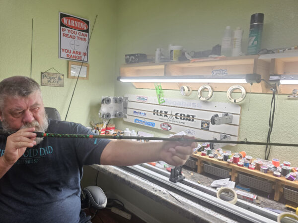 Crosby says he got a boat, started fishing more, and began building fishing rods. “I started building for myself because I wasn’t liking too many rods available on the market,” he says. “I told my wife, ‘I’ve got to have a pastime, something to keep me occupied.’ And here I am now. I’ve enjoyed rod building since day one, so I turned it into a business.”