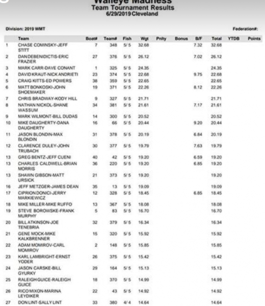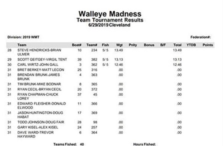 2019 Cleveland Walleye Madness Tournament Results Cominsky & Stitt for The Win