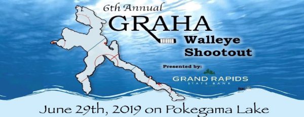 Join us on Saturday, June 29th for the GRAHA Walleye Shootout! One hundred boats will come to compete on Pokegama Lake. There will be lots of action both on and off the lake! Join us at 6:30pm for the most entertaining weigh-in you’ll ever experience! The excitement starts with a boat parade of the top ten anglers and builds until one lucky team survives the hot seat for a chance to kiss the cup! TruNorth DJ will then get the dance party started at 8:00pm. For more information, find us online at www.grahawalleyeshootout.com . The GRAHA Walleye Shootout is presented by Grand Rapids State Bank.