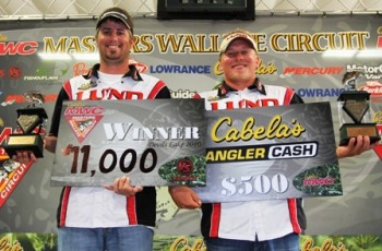 August 22, 2010-DEVILS LAKE, ND-Jon Dircks and Curtis Blake brought a monster 19.70-pound basket to the scale to win a weather-shortened walleye fest at the Cabela’s Masters Walleye Circuit’s Western Division stop on Devils Lake.