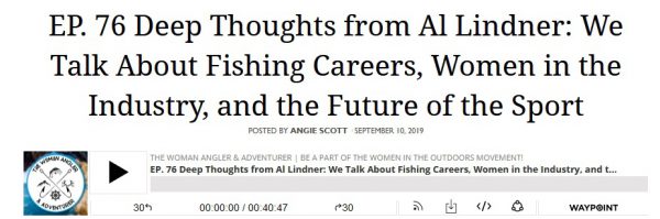 Al Lindner joined up with The Woman Angler & Adventurer podcast and spoke with us. Al’s years of experience gives him a unique perspective on the fishing industry both past and future. Social media has helped fuel the change and the working in the fishing industry has significantly more options than it ever has before.