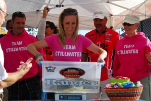 The teams joined professional anglers, Kevin Kerkvliet and Dean Kaminski in their pink-wrapped Save the TaTas Ranger boats. The four-hour fish-off was great fun for those involved. Darcy Markus, owner of a downtown Stillwater business, Maison Galleria, and one of the anglers on the winning team, was quick to extend an invitation to host the event on the St. Croix in 2012. “We hope we can begin a tradition of inviting our new crosstown friends to do this in the fall next year,” shared Markus. “It’s a great cause and falls into the time of year where even football players are wearing pink on the field. Why not fish for the cause in these beautiful pink boats in communities where we live and enjoy our time on the water?” Darcy’s husband, Jeff, also fished on the winning team, as did Deanna Getschel, owner of Jazz Hair Salon in Stillwater.