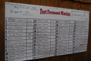 The tournament action will start at 5 am as the anglers motor their boats to the docks at Fort Fremont to be checked in for the day’s event. Promptly at 6 am the anglers numbered 1-40 will be sent out in numerical order. The first flight of the day will return no later than 1pm for the tally of the days catch. The boats numbered 41-75 will be sent out numerically at 6:30 am and return no later than 1:30 pm to start there tally.