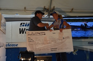 Marianne Huskey Accepts the Lund AOY Check from Jason Oakes of Lund Boats