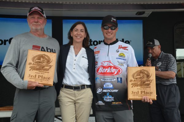 John Janiak and Jim Demboski dropped to second place with a two-day total weight of 35.09 pounds, as the mud trolling bite toughened up on day two for the day one leaders. Korey Sprengel and his father Karl Sprengel moved up the ladder for a strong third place finish with 33.09 pounds, pitching Berkley crank baits and jigs at shallow structure; a radically different pattern than what most of the Merc National teams were fishing. Fritz Peterson and Ron Heim Jr. took fourth place with 33.05 pounds and rounding out the top five was Mike Borkowski and Andy Barthels with 32.07 pounds. The final scoring for the entire field can be found at https://mercurynational.com/results/.