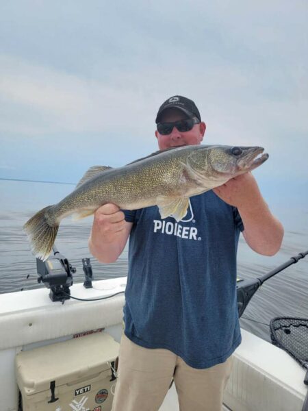 It is helpful to cover water to find fish and keep presentations in front of fish, many of which are out on the deep mud. Some anglers are still sticking to deep reefs which can always be a magnet. Both are putting out walleyes.
