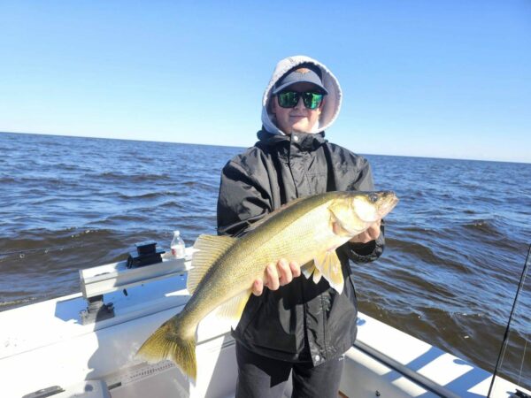 On the south end… A good week of walleye fishing with some big fish caught along with good eaters. All of that despite some fronts that came through and lots of wind. Being in a charter boat a few days this week was an advantage for sure.